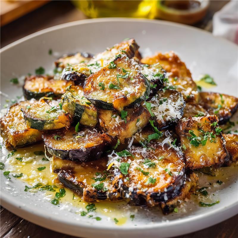 Aubergine und Zucchini aus der Pfanne nehmen und auf einem Küchenpapier abtropfen lassen