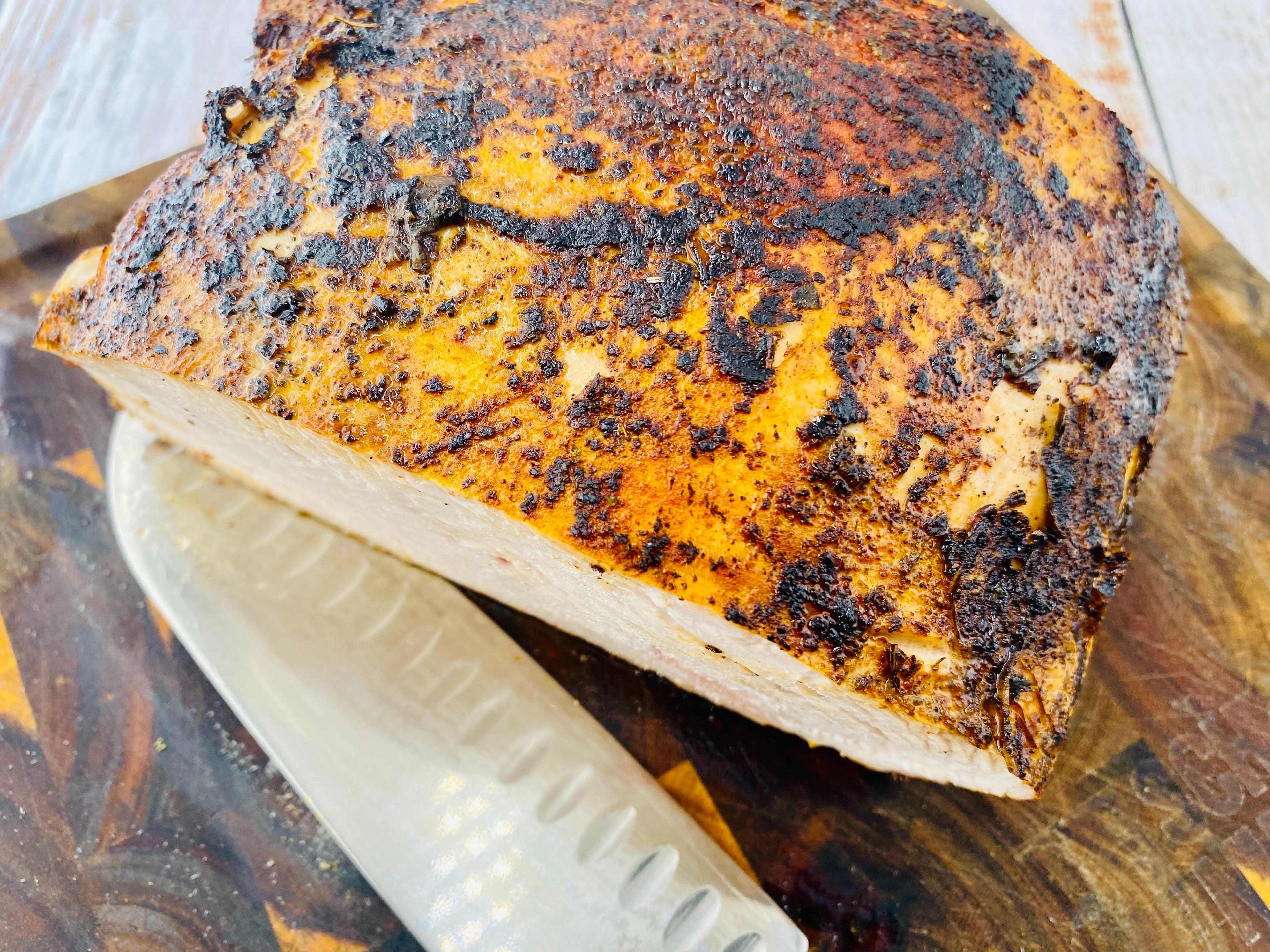 Putenbrust aus dem Ofen nehmen und in Scheiben schneiden. Evtl. mit etwas Zitronensaft und Olivenöl beträufeln und mit etwas Gewürzsalz würzen