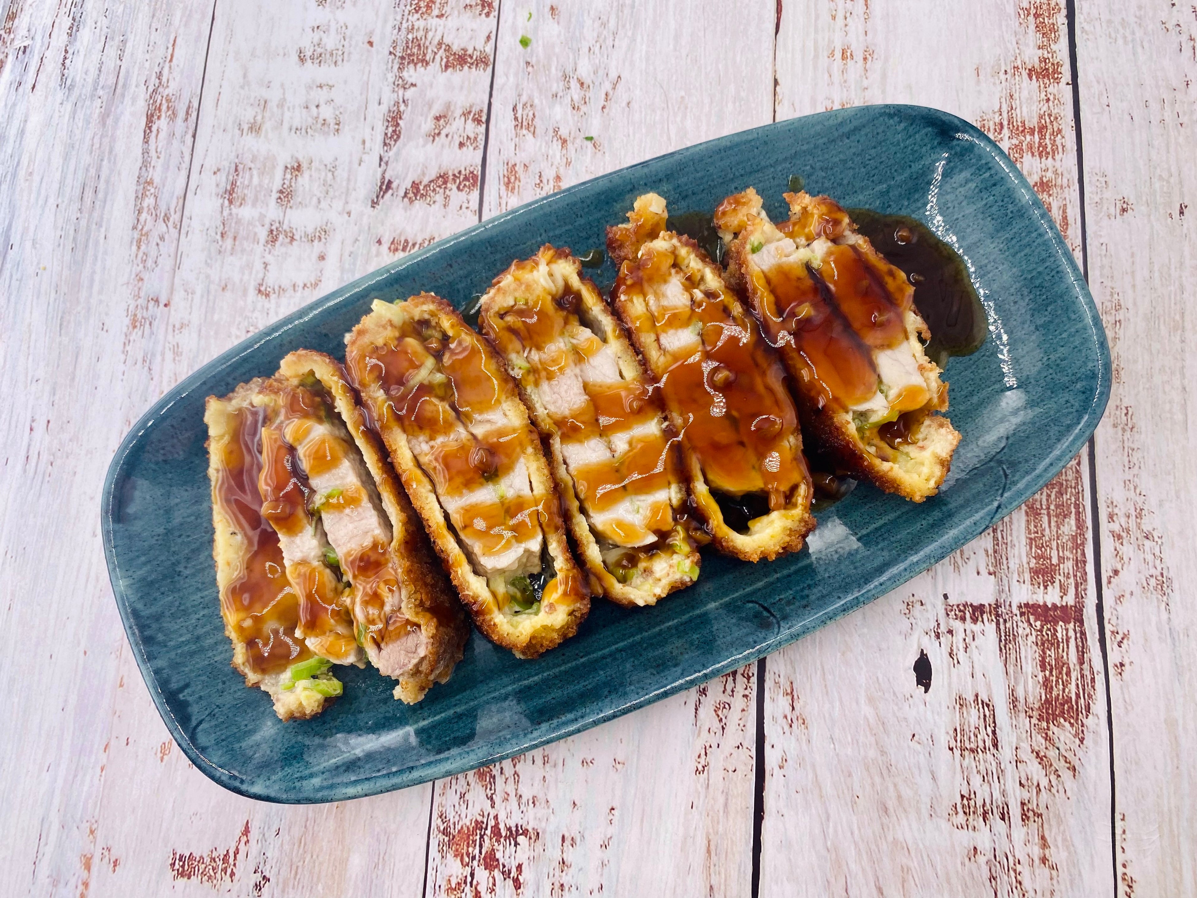 Gefülltes Schnitzel mit Knoblauch-Teriyaki-Sauce