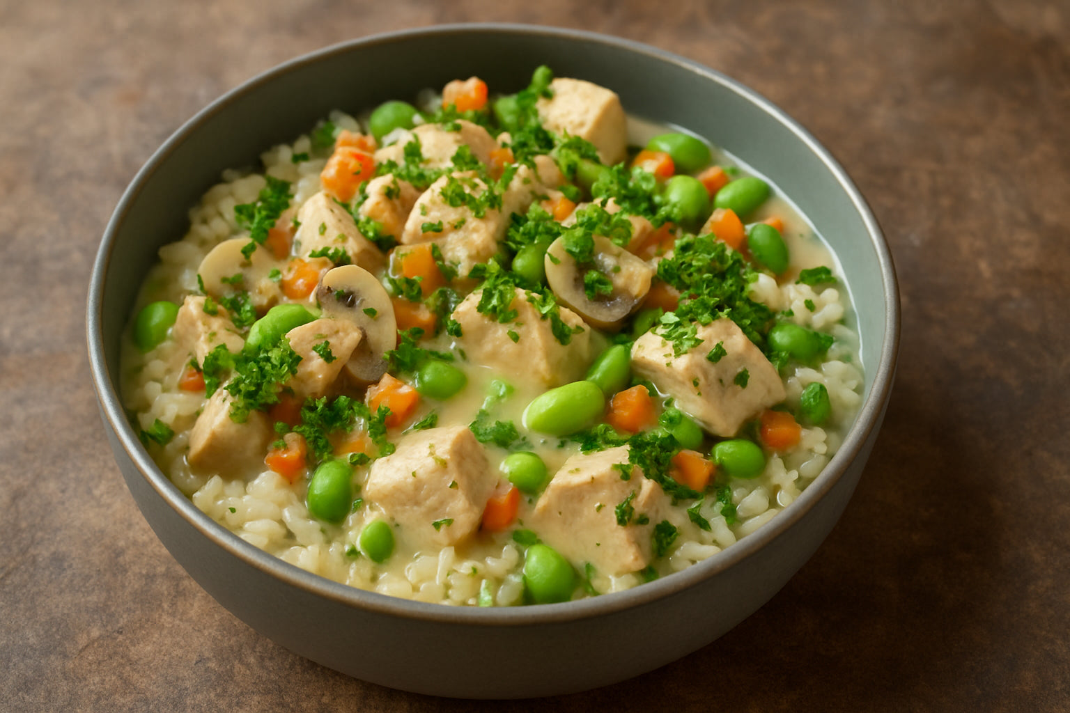 Bis 45 MinutenOne-Pot-Reis mit Hähnchen und Soja