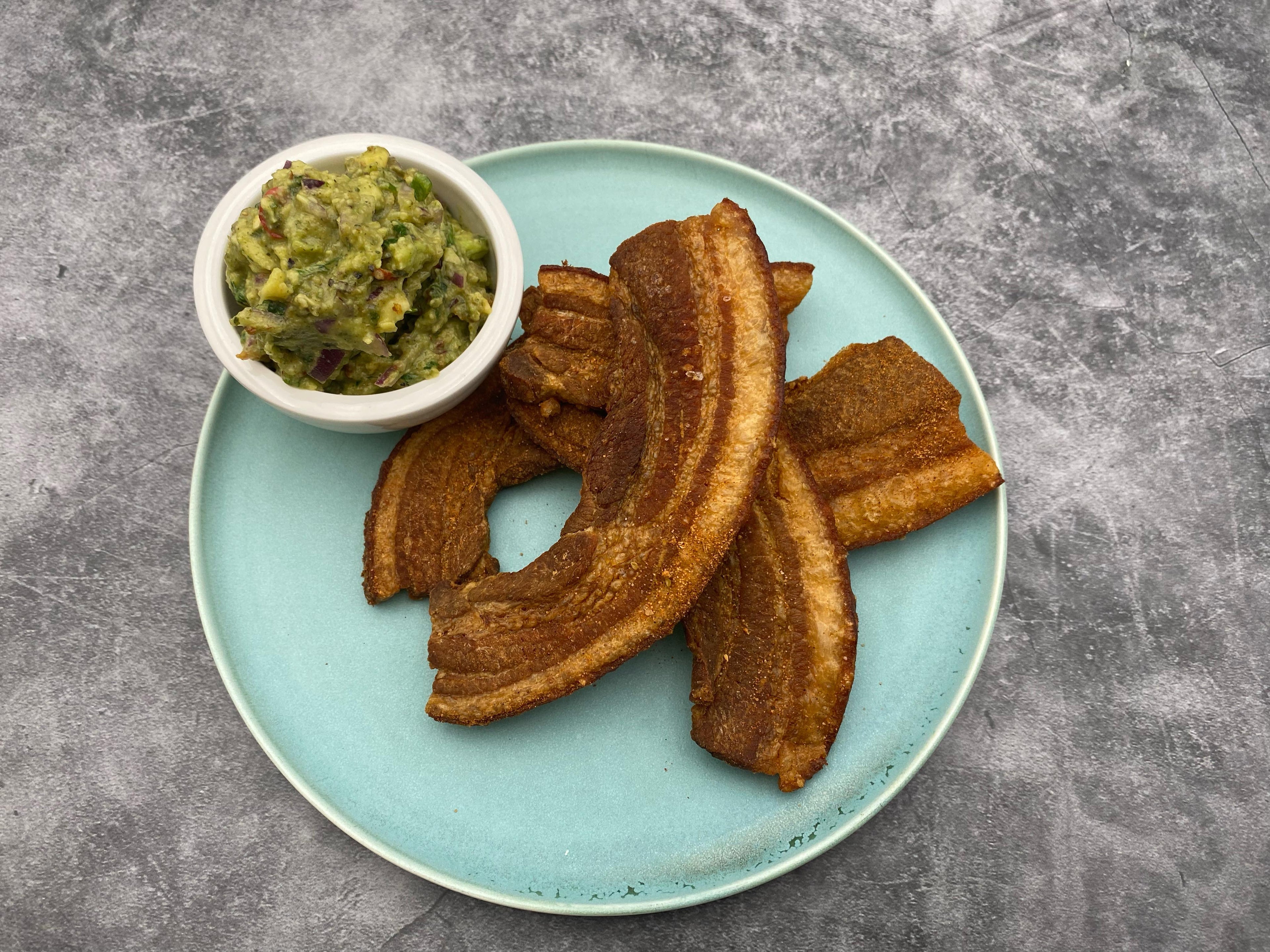 Knuspriger Schweinebauch mit Guacamole