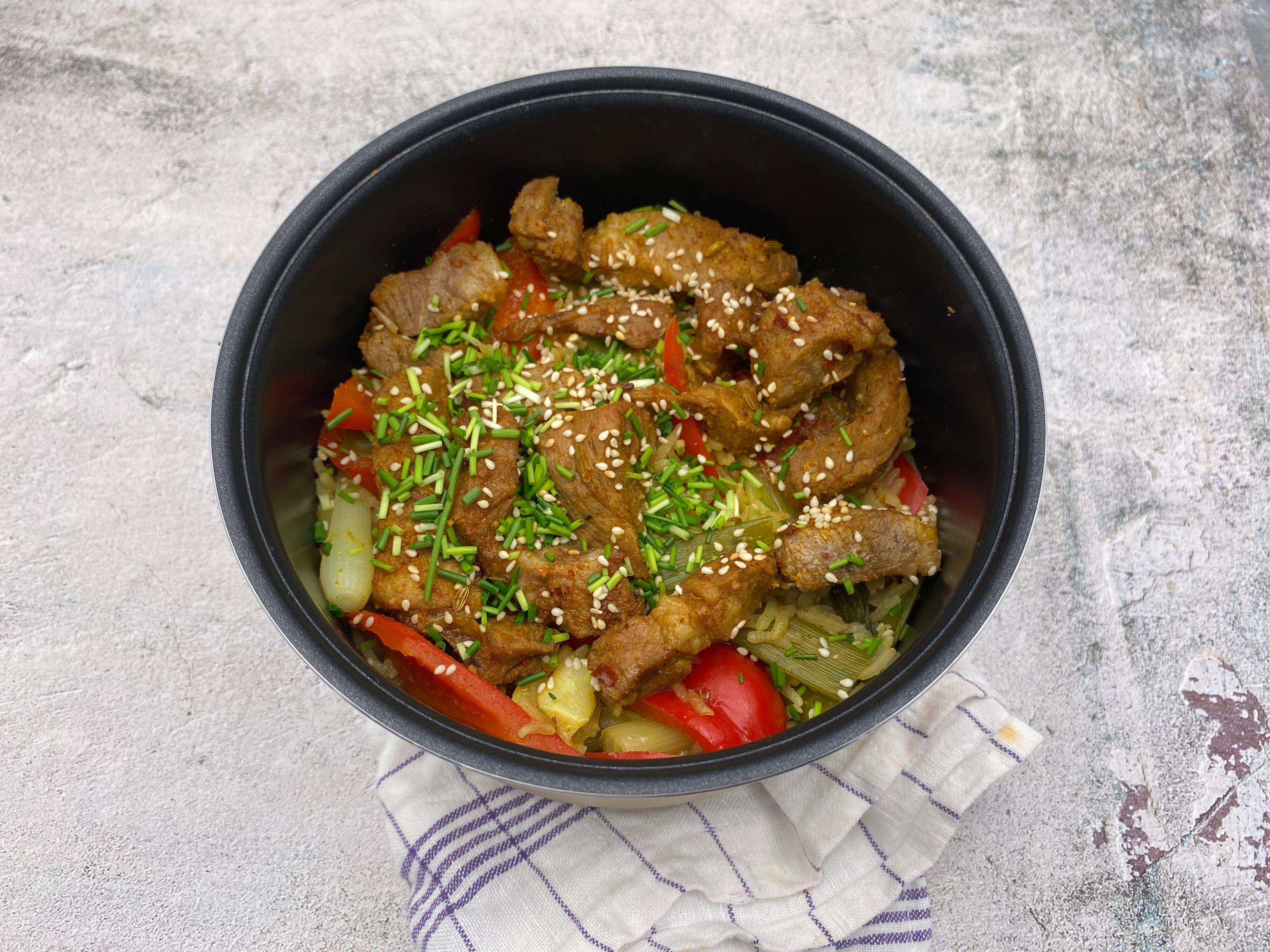 One-Pot aus dem Reiskocher mit Schweinenacken