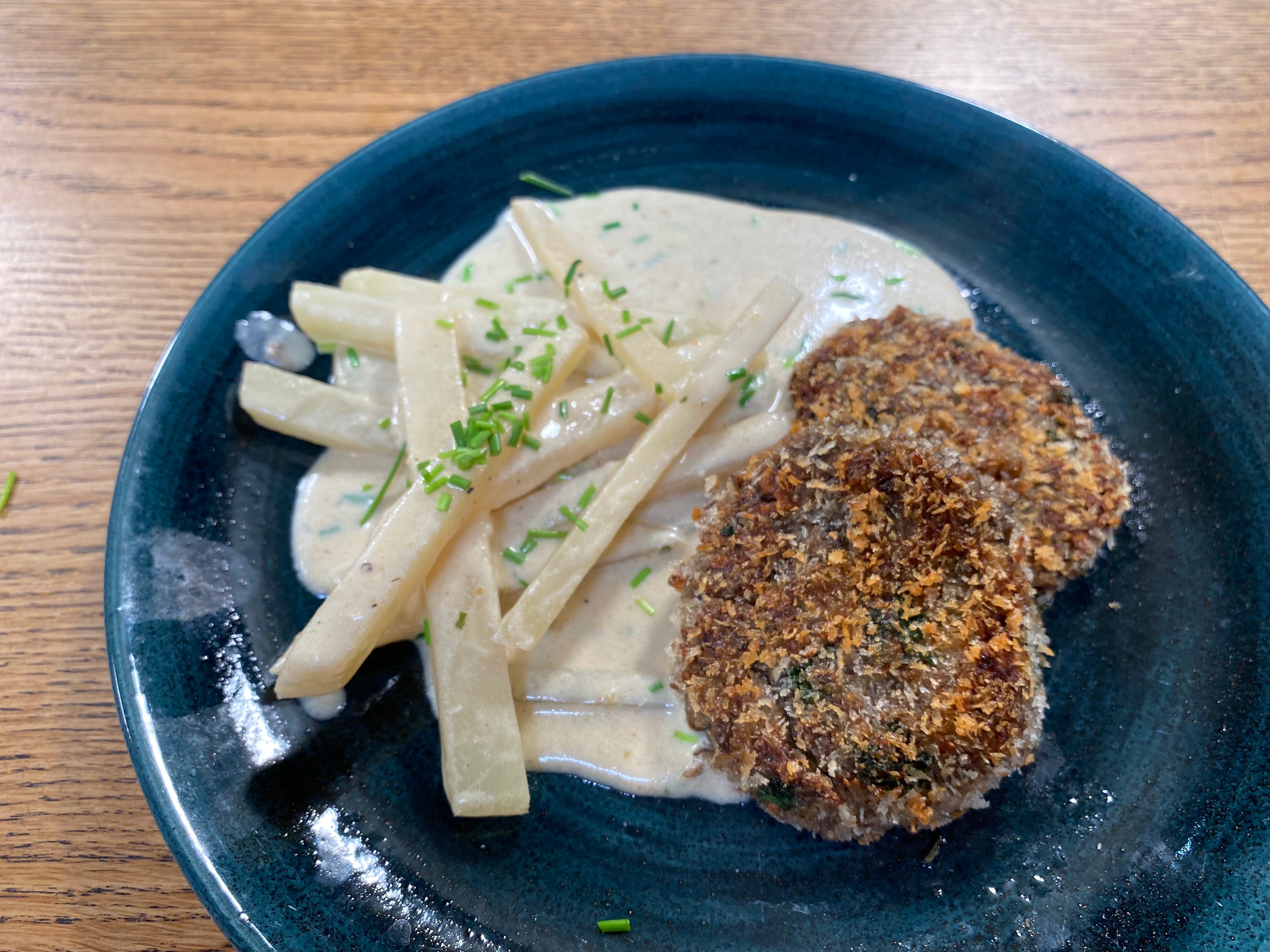 Pilzfrikadellen mit Kohlrabi-Rahmgemüse