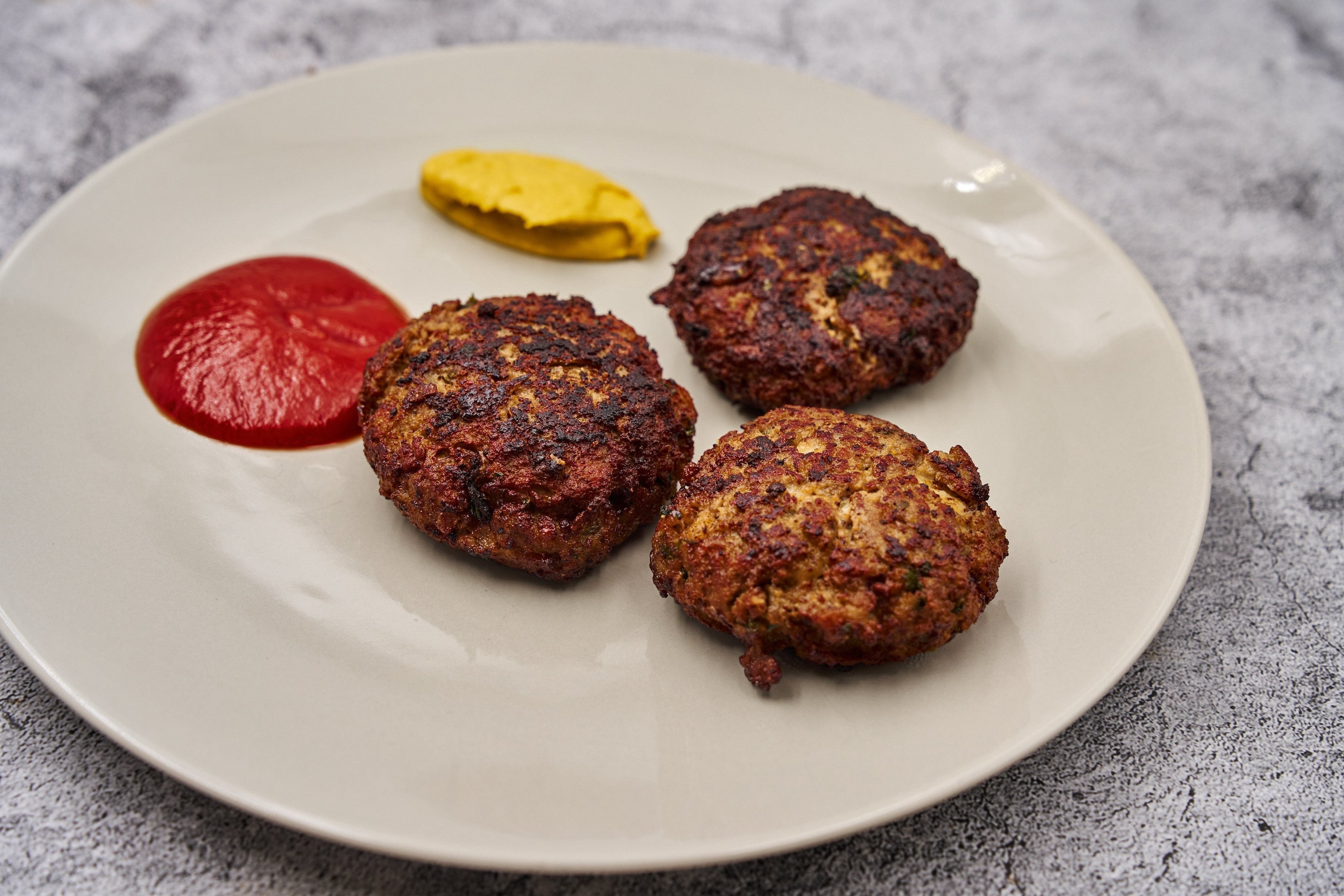 Frikadellen aus der Pfanne nehmen, auf Küchenpapier abtropfen lassen und auf Wunsch mit einer Beilage, Ketchup und Senf servieren.