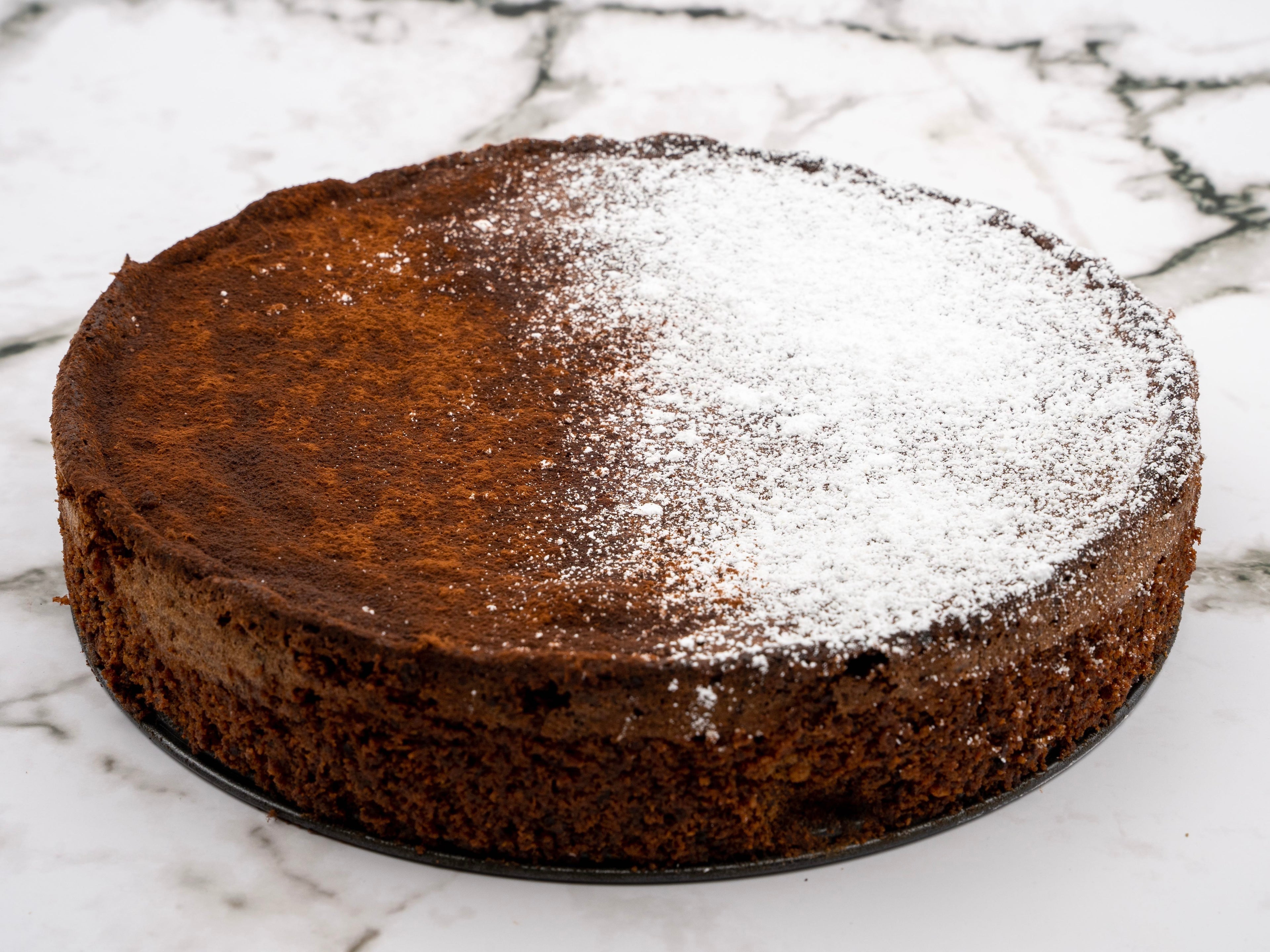 Den Kuchen aus dem Ofen nehmen und kurz abkühlen lassen. Anschließend mit einem Messer vorsichtig zwischen Kuchen und dem Rand der Springform entlangfahren. Dann die Springform öffnen und den Kuchen nach Belieben mit Kakao und Puderzucker bestäuben.