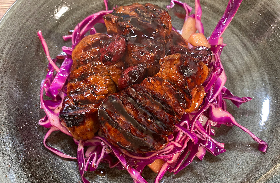Teriyaki vom Schweinefilet mit rotem Spitzkohlsalat
