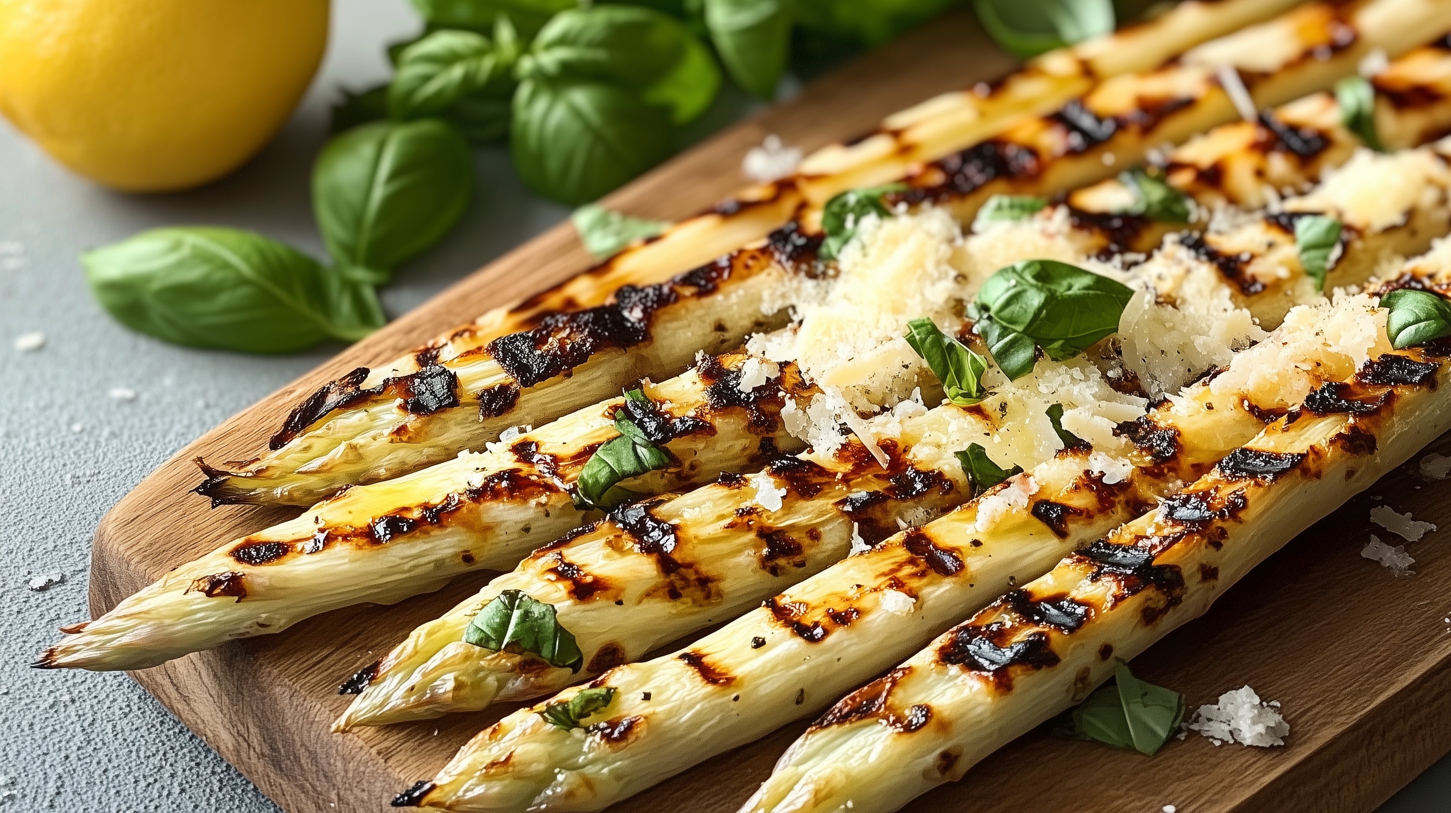 Weißer Spargel vom Grill mit Parmesan und Zitrone
