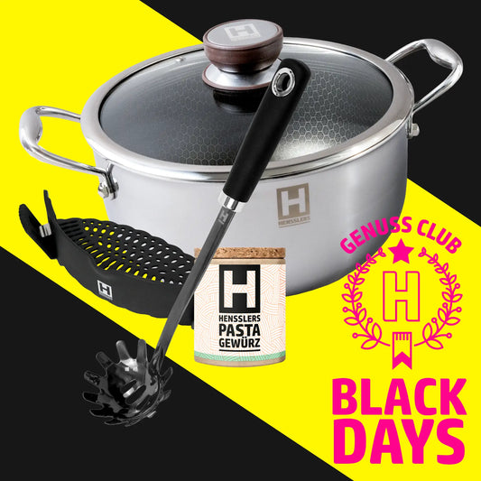 LIMITIERTE STÜCKZAHL! ⚡️Black Days⚡️Normaler Preis CHF 113.00Inhalt Inhalt 0 ( / pro ) , inkl. MwSt. zzgl. Versand-25% Verkaufspreis CHF 113.00 Normaler Preis CHF 151.00Nur zum Black Friday und exklusiv für Genuss Club Mitglieder – das perfekte Pasta-Set mit Profi-Anspruch und starkem Rabatt.