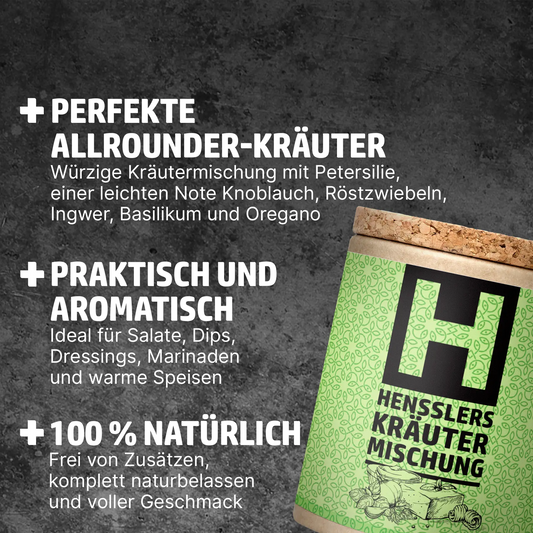 Klar, Salz und Pfeffer tun ihren Job. Aber wenn du Geschmack willst, der hängen bleibt, brauchst du mehr als Standard. Ein hochwertiges Gewürz wie HENSSLERS Salatgewürz sorgt für:
