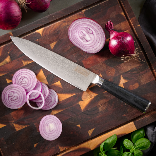 Ein Highlight am Messerblock und in der Hand aus 67-lagigem Damaszener Stahl