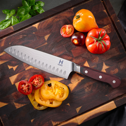 AUSVERKAUFT!18cm langer und ultrascharfer Klinge aus VG10 Damaststahl und rotem Pakkaholz-Griff