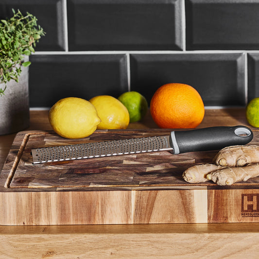 Eine absolut scharfe Reibe aus Edelstahl mit rutschfestem Boden