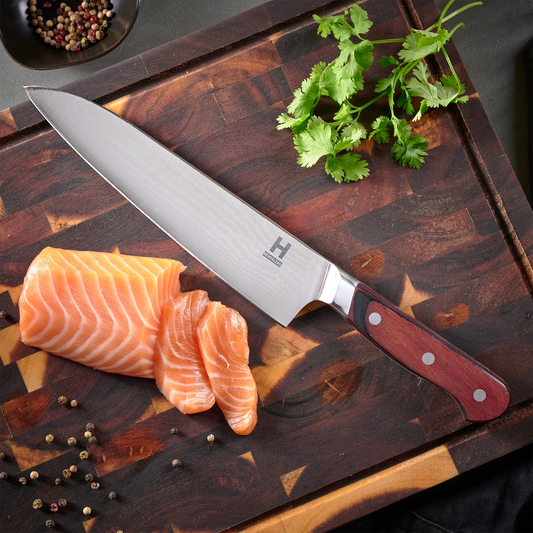 22cm langer und ultrascharfer Klinge aus VG10 Damaststahl und Pakkaholz-Griff