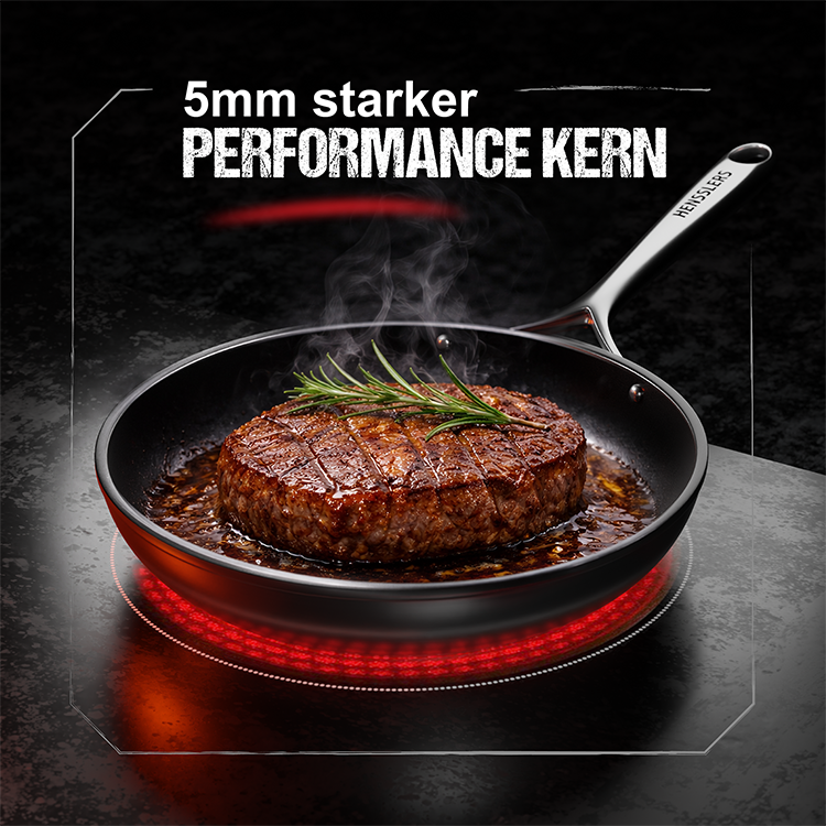 Die 5 mm starke Konstruktion speichert Hitze sehr gut, sodass scharfes Anbraten problemlos möglich ist. Wichtig ist jedoch, die Pfanne nicht dauerhaft auf höchster Stufe leer zu erhitzen.
