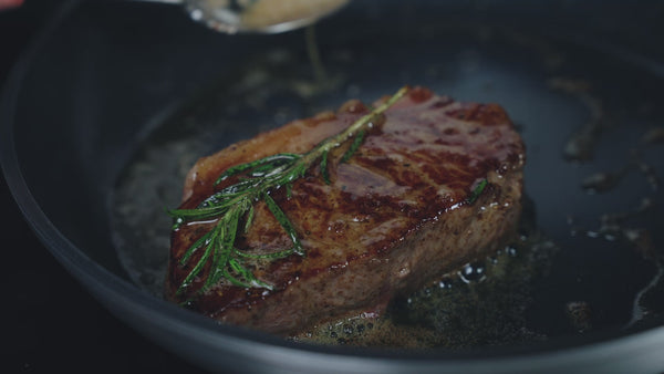 Pfanne vorheizen, etwas hoch erhitzbares Öl verwenden und dann das Bratgut einlegen. So bekommst du Röstaromen, ohne die Beschichtung unnötig zu belasten.