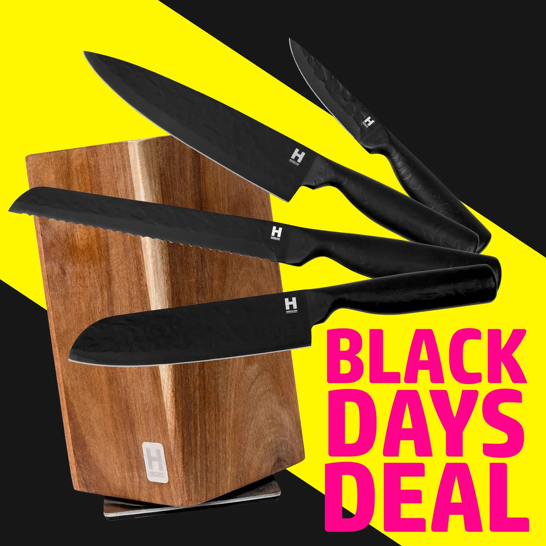 Mit dem Black Blade Pro Set mit 360° Messerblock holst du dir höchste Schneidleistung und stilvolle Aufbewahrung in einem: Die Black Blade-Messer-Serie vereint ultrascharfe Klingen mit edlem, mattschwarzem Design – und der dazugehörige 360° Messerblock aus Akazienholz bietet sicheren Zugriff, magnetischen Halt und ansprechende Präsentation.