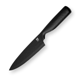 Die Klinge besteht aus hochwertigem Messerstahl, bekannt für seine Korrosionsbeständigkeit und langanhaltende Schärfe. Der Griff aus hochwertigem Edelstahl bietet Stabilität und Komfort. Die mattschwarze Beschichtung ist nicht nur ein optisches Highlight, sondern auch funktional – sie verhindert das Anhaften von Lebensmitteln.