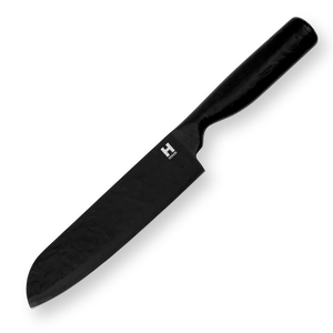 HENSSLERS Black Blade Santokumesser - Vereint höchste Präzision und modernes Design in einem Werkzeug, das jede Küchenaufgabe mit Leichtigkeit meistert. Die 7-Zoll-Klinge aus hochwertigem Messerstahl bietet eine außergewöhnliche Schärfe und Langlebigkeit, während die schwarze, matte Beschichtung ein müheloses Schneiderlebnis garantiert.