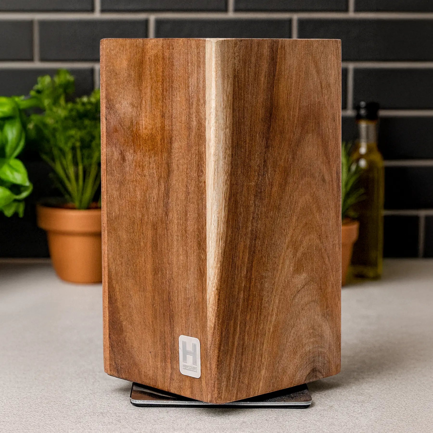 Der Block ist aus massivem Akazienholz gefertigt – langlebig, edel im Look und ideal für eine hochwertige Küchenoptik.