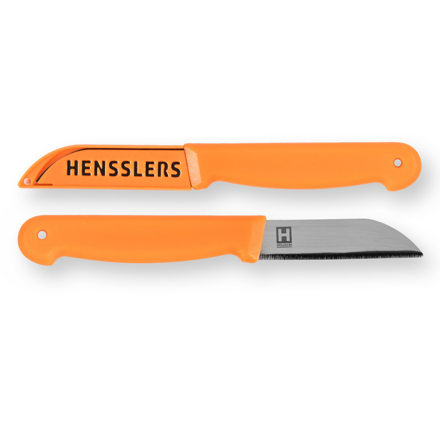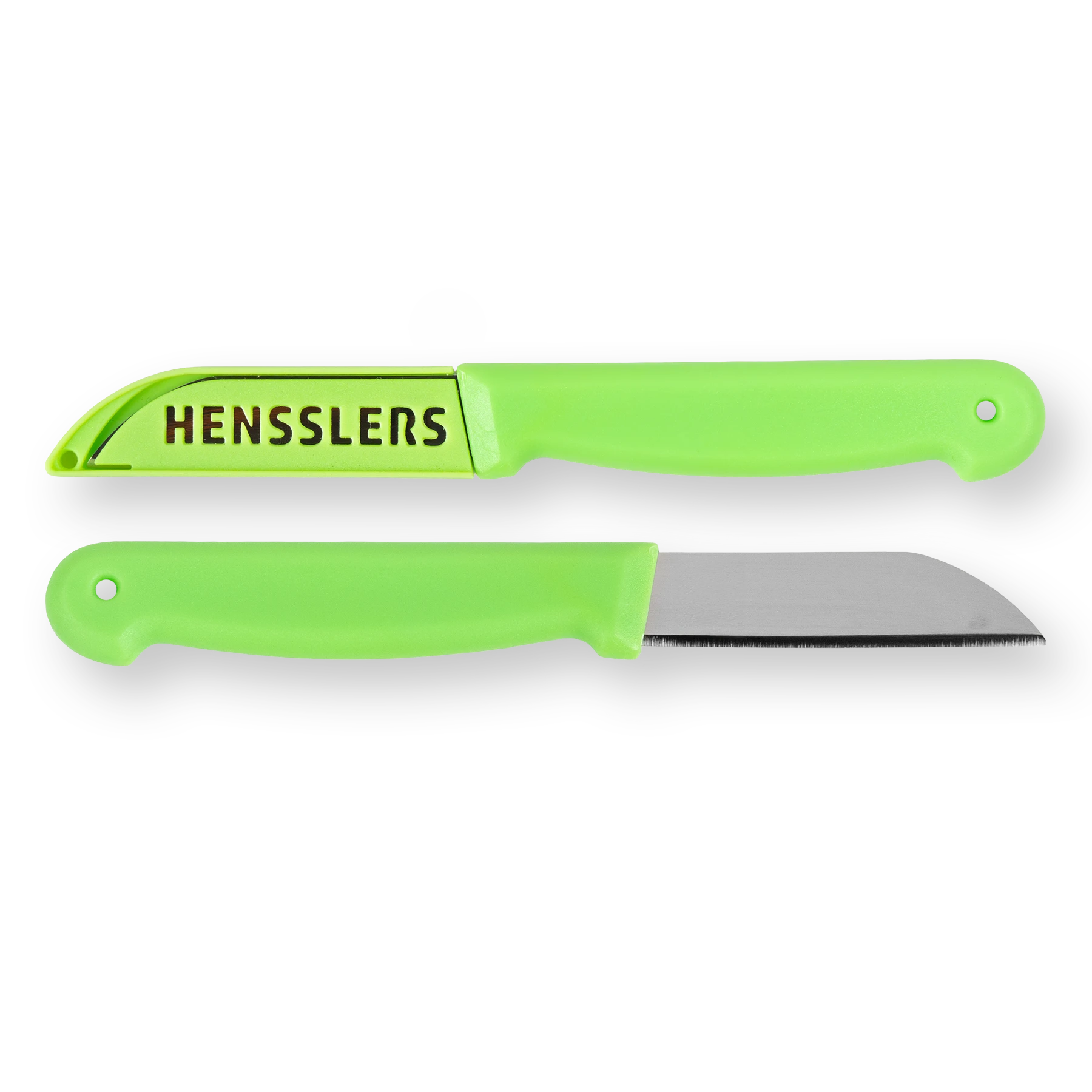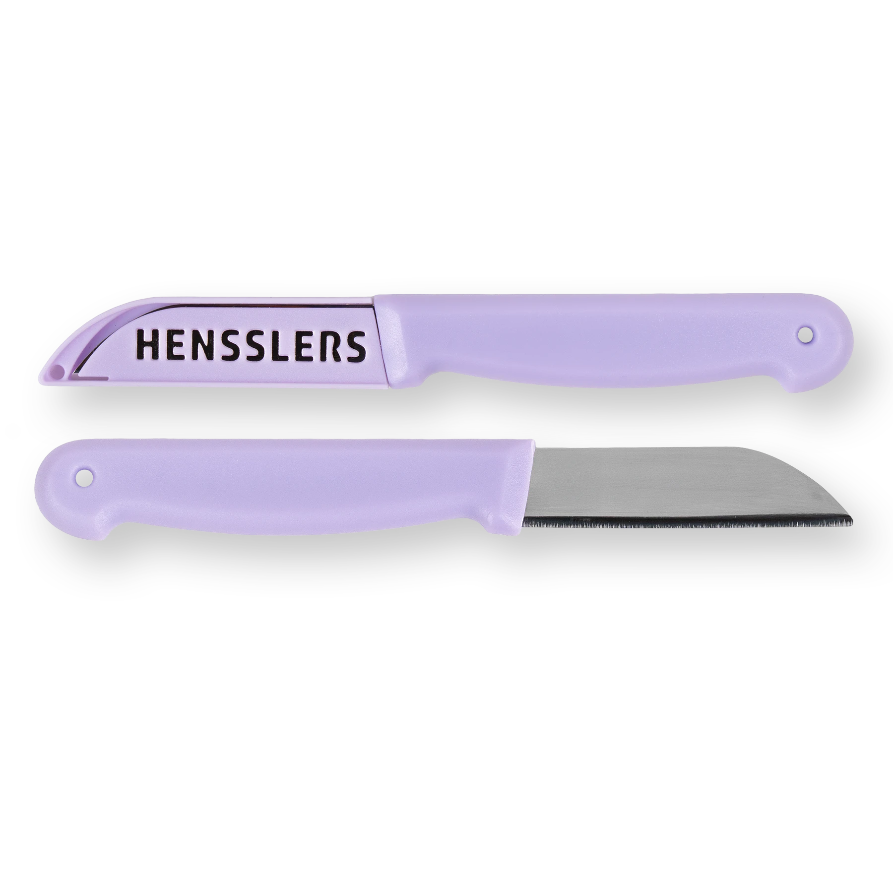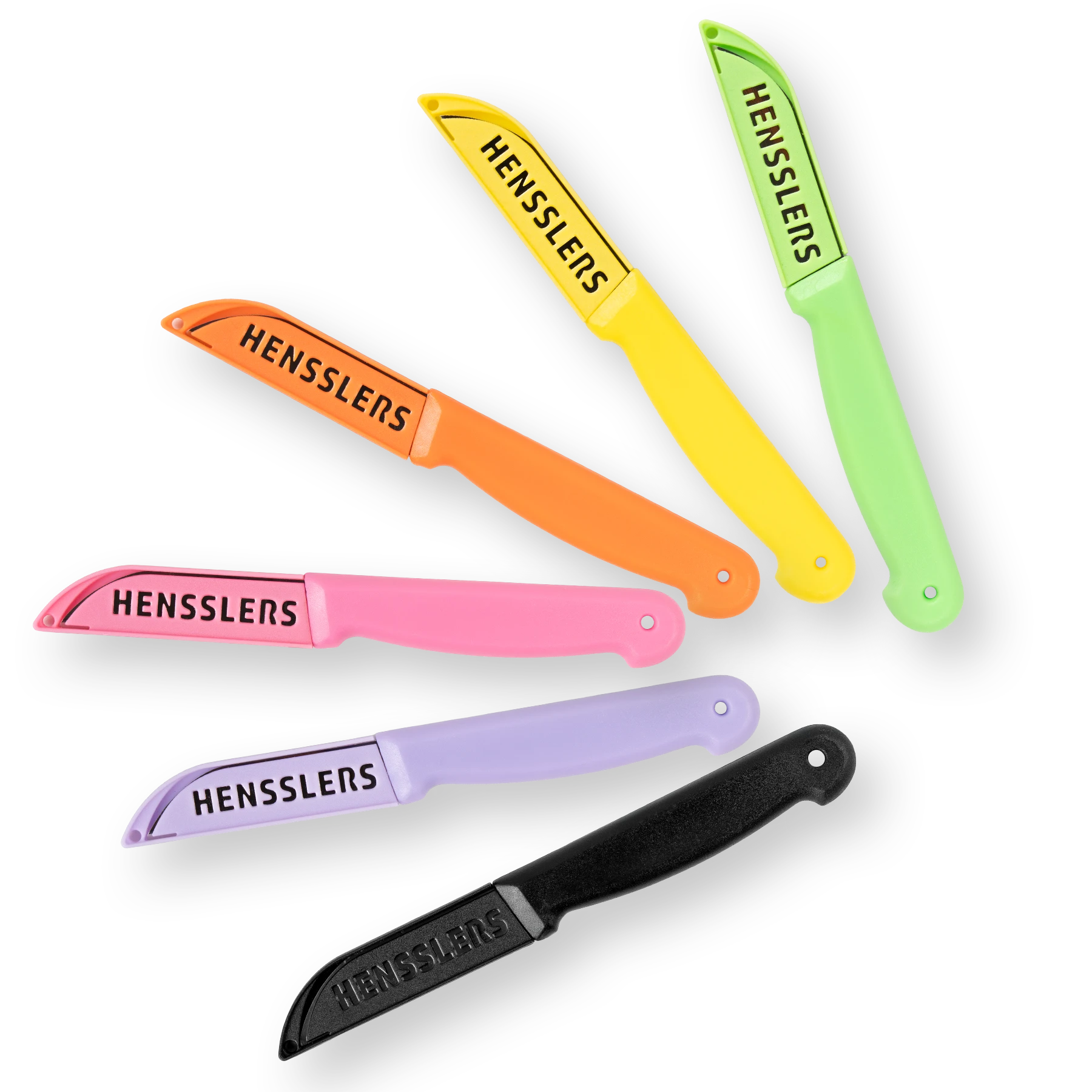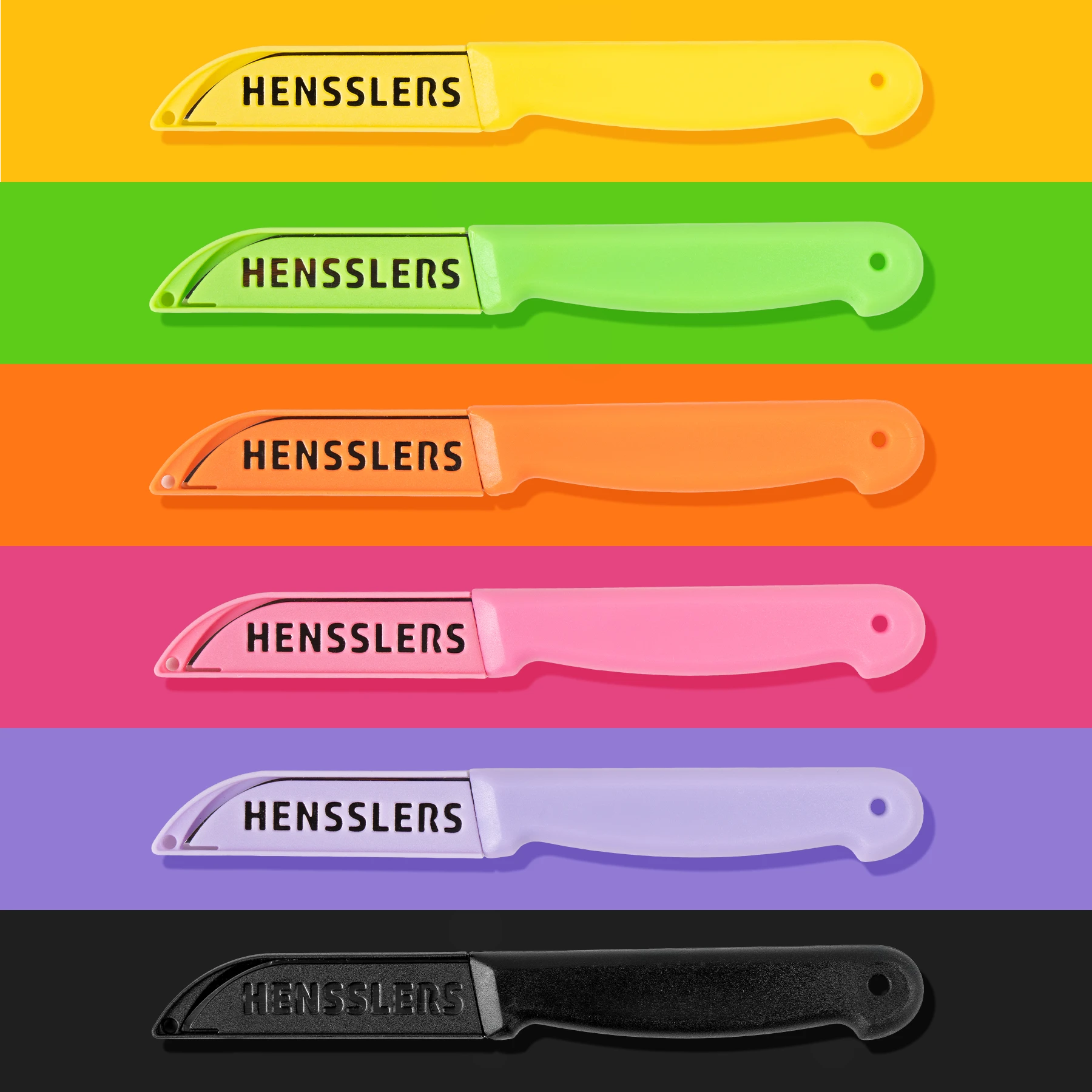 Die HENSSLERS Schälmesser in fünf frischen Farben bringen nicht nur Style in deine Küche – sie liefern vor allem eines: saubere, präzise Schnitte bei allen feinen Arbeiten. Die scharfe Edelstahlklinge gleitet mühelos durch Obst, Gemüse und Kräuter und ist damit der ideale Begleiter für schnelle Zubereitung und detailgenaue Küchenarbeit.