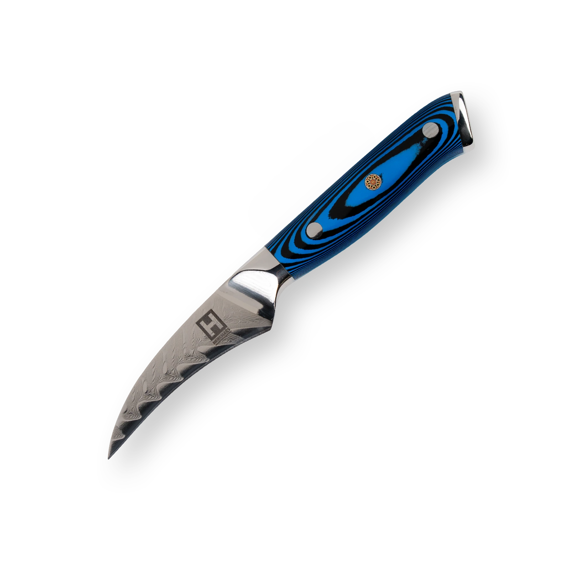 Das HENSSLERS Tourniermesser Blue Edition ist das Messer für alle, die beim Feinschnitt keine Kompromisse machen. Die markante, stark gebogene „Schnabelklinge“ folgt natürlichen Rundungen wie von selbst – ideal zum Schälen, Putzen, Formen und für dekorative Cuts auf Profi-Niveau.